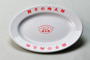 楕円の餃子皿とタレ皿 渕一周もオリジナルデザインです |
